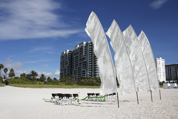 India and Ricky traveled from North Carolina to have their destination Miami Beach wedding this month. Along with their closest friends and family they had a beautiful ceremony before they hopped on board their honeymoon cruise! I loved the color palette for this wedding which was chocolate brown with lime green, together with their tropical flower accents. Our decor included our signature white wedding flags and fabric aisle way. They had a small champagne toast and cake following the service. It was great fun planning your wedding, congratulations to you both!